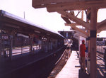 South of Roosevelt Road, we enter the port-of-entry Pilsen neighborhood and notice quite a few vacant lots just south of Roosevelt. We rise up and cross over the busy Burlington Northern - Santa Fe viaduct. This viaduct is unusually wide, carrying numerous Metra, Amtrak, and BNSF freight trains. South of the viaduct, we approach the station at 18th (1800S / 1700W). This station is located in the heart of the Pilsen business district, a vibrant neighborhood that serves as a major port-of-entry for Chicago's Hispanic immigrant community. On summer weekends this neighborhood comes alive with pedestrian activity and resembles Spanish Harlem in New York. The station itself is similar to Polk, except that the platforms seem narrower and that colorful murals cover almost every exposed surface. The murals, painted by local artists, feature mostly Hispanic themes and add a great deal of character and flavor to an otherwise bland CTA station.