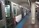 Our next stop is Chicago (800N / 1E/1W). This busy station serves the active Streeterville neighborhood, and provides access to the North Michigan Avenue shopping district a couple blocks to the east. Loyola University's downtown campus, the historic Water Tower, and the John Hancock Center are all nearby. In response to high traffic here, the station is in the midst of a massive reconstruction project. The mezzanine is being enlarged to almost twice its previous size, new stairs and escalators are being installed, and the side platforms are receiving new, brighter architectural treatments that include decorative tilework. Elevators have been added to make the station ADA-compliant. Despite what many tourists seem to think, the station name refers not to the city of Chicago, but its location at Chicago Avenue.