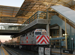 In 2002, Caltrain began a major upgrade of its trackway, installing many high-speed switches, passing sidings and concrete ties, in anticipation of the startup of its now-successful "Baby Bullet" rush-hour expresses, which stop only at selected stations and allow for a trip time from San Francisco to San Jose in under an hour. More new equipment--this time the familiar "lozenge" triple-deck coaches found on numerous commuter operations such as Metrolink in Los Angeles and GO Transit in Toronto--was acquired for this service, beginning in mid-2004. Current service level calls for 48 trains in each direction on weekdays--the most intense frequency ever! The newer Bombardier equipment has plug-in connections for laptops. Hourly local service operates on weekends and major holidays. Fares are distance-based, with monthly commuter passes available. In a recent departure from the traditional American practice of conductors selling fares on-board, Caltrain converted to a proof-of-payment system, and tickets must be purchased before boarding the train.