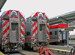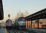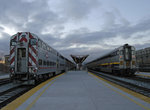 The coaches are of the Bombardier "lozenge" 3-level design familiar to riders in many cities in the U. S. and Canada. There are currently 20 coaches--9 cab cars and 11 regular coaches. Five locomotives built by EMD are on hand to propel the trains, with the engine most of the time on the west (San Jose) end. All coaches are set up to allow laptop connections, and a new Wi-Fi service has been installed.