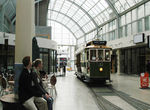 Christchurch Tramways' Melbourne car number 244 passes through the galleria at Cathedral Junction. Photo by Peter Ehrlich, May 2005.
