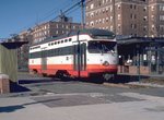 Leaving Tower City heading southeast we are on the 1920 Shaker Heights alignment as we parallel the Norfolk Southern again. There are still catenary supports here from the long abandoned mainline electrification project. East 34th St.-Campus and East 55th Street are the next two stations. As we approach East 55th, the main shop facility is on our left and beyond it lies a major Norfolk Southern freight yard. As we leave E. 55th the lines diverge; the Blue/Green LRV lines head east and the rapid transit line turns northeast toward Windermere. We are now adjacent former New York Central trackage. There are six stations on this route: East 79th St., East 105th St.-Quincy, University Circle, East 120th St.-Euclid, Superior, and Windermere (now called Louis B. Stokes after a local politician). All of these are island platforms on embankment, and there are bus transfer stops at the street level. Only Windermere, which was rebuilt when the shops were removed, is ADA compliant. As we enter the rebuilt Windermere station there is some evidence of the former configuration. As built in the 1950s there was a turnaround loop and shop facility. Now there is a simple stub end terminal.