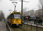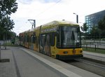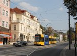 The newest trams in Dresden are 45-meter-long, 12-axle Bombardier low-floor LRVs numbered in the 2800 series, 2801-2828. 32 of these luxurious trams were ordered, with deliveries beginning in 2003, and 28 were on the property and in service in early 2005. They are used on lines 2, 7, 11 and 41. Each 2800-series tram is also named for a Dresden-area community, suburb or district name (examples: 2801 = Lautzen, 2806 = Görlitz, etc.).