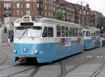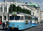 Backbone of the Gothenburg tram fleet appears to be the ASEA-built M31 articulated cars, constructed between 1984 and 1992. Again, these are very 'chunky' vehicles, and number 80 in total. All have received a low-floor centre section, which is wheelchair accessible. Of the M28, M29 and M31 cars, most carry Goteborgs Sparvagnar's attractive blue and white livery, but a handful remain in older three-tone blue colours.
