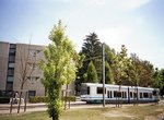 Line B, which was extended west to Cité International from Gares in 2000, follows Line A through town, but after Hubert Dubodout, it will turn northward and travel along Ave. Mariche Randon, basically along the south bank of the L'Isère as far as Tronche L'Hôpital, whose station is actually located on the bridge. Briefly, the line serves Grand Sablon before re-crossing the L'Isère and running southeast, ultimately ending at Universités, its terminal in 2002. Line B has since been extended further to Plaine des Sports in the suburb of Gières. A new carbarn in Gières, which will serve Line B as well as new tram routes C and D, opened on May 21, 2006 in conjunction with the startup of Line C.