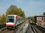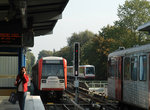 Hamburg's U1 line runs from Nortstedt Mitte to either Ohlstedt or Groshansdorf. The U1 splits apart at Volksdorf. Once the U1 leaves form the Nordstedt Mitte it travels south toward the center city. It does make a stop at Ohlsdorf which is a transfer point for the S1 line and the 110 Airport Express. It is not uncommon to see travelers with suitcase at this station. Hamburg unfortunately does not have a direct rail link to the Airport. The 10 minute bus ride from Ohlsdorf to the Airport is pretty fast and inexpensive. There is also an Airport express bus that goes to the main Hauptbahnhof also. As you continue on the U1 south you reach Kellinghusenstrasse, a transfer point to the U3 line. The U1 continus south to Jungfernstieg which is located at the southern portion of the Binnen Alster or inner Alster. Above this station you will find a picturesque view of the Alster lake as well as many fine shops. If you look across the Binnen Alster you can see several trains crossing the bridge between Damtor and the Hauptbahnhof. If you have the time, a ride on an Alster boat is highly recommended. Not only will you get a great view of the city, but you will get to pass under the railroad bridge as you pass from the Binnen Alster to the Aussen Alster. After Jungfernstieg the U1 travels east toward the Hauptbahnhof and then back up towards the north east past the neighborhood of Wandsbek before it reaches Volksdorf. At Volksdorf the U1 branches off into two lines. Ohlstedt is north and only three stops away, but Groshansdorf is six stops further and runs on a beautiful tree lined right of way. This line, at one point featured double track operation, but has been reduced to a single track operation due to low ridership. It has some two track bypass stations along the way.