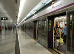 The 2003 trip begins at Nam Cheong, a station that is run jointly between KCRC and the MTRC, the subway system. The West Rail section of the station has two tracks and two side platforms, with a turnback track to the south of the station. Trains are turned around there, and the stretch will become part of the next extension to Hung Hom station to be completed in 2009. The theme colour of this station is a lemony yellow, which both the KCRC and MTRC platforms share. The MTR connection here is with the Tung Chung Line, which goes between the island and Lantau. Connections to the Airport Express can be made at Tsing Yi station, a few stations up the MTR towards Lantau.