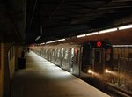 The lower level is abandoned, and the express tracks from here to Church Ave. are unused. The lower platform can be accessed via sets of double stainless steel doors which, when open, reveal the stairs to the lower level. The lower level has no tile on the wall, just unpainted concrete and old lights. A look at the trackways on the upper reveals evidence the ceiling of the lower level platform.