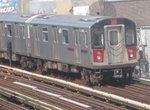 4 Three tracks and two island platforms. This is the only "express" stop on the elevated line. There are extra side exits from the wooden mezzanine near the stairs to the platform. This station is between 3 and 4 stories off the street.