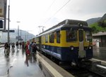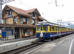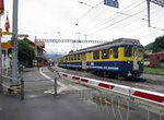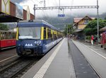 The Berner-Oberland-Bahn, or "BOB", provides service from Interlaken Ost station to Lauterbrunnen (12km from Interlaken) and Grindelwald (19km from Interlaken). Mostly a meter-gauge, standard traction railway there are portions of rack operations nearing Lauterbrunnen. The line opened with steam powered trains in 1890, and was converted to electric operation in 1914. Trains are typically made of up of one electric motor car and some number of trailers. There are both high floor and new low floor cars, and trains typically have some cars of each type. Trains depart Interlaken in a long consist and are split at Zweilütschinen into sections for Lauterbrunnen and Grindelwald. On trips towards Interlaken the separate trains are joined at Zweilütschinen. Transfers are made at Interlaken Ost to SBB and other main line rail services (e.g. the Golden Pass and Zentralbahn); at Lauterbrunnen and Grindelwald to the Wengernalpbahn to Kleine Scheidegg; and at Wilderswil to the Schynige Platte Bahn.