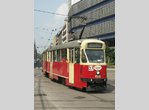 Whilst service is generally reasonable, the same cannot be said about the condition of the tram fleet. The vast majority of cars operated are standard Polish-issue Konstal 105Na single-ended types, most of which are in a dire condition; breakdowns are common. The red paint on many is badly weatherbeaten and faded, large areas of corrosion are often apparent, doors frequently fail to work and several are decorated with considerable amounts of grafitti. Interiors would seem to have received no attention since the cars were built. Whilst some 105Nas operate as two-car sets, the majority now operate as single cars and overcrowding can be severe. There is also a small number of similar 111Na cars, which are fitted with doors on both sides and thus, when coupled back-to-back, can operate bi-directionally, although they wouldn't appear to be allocated to a particular route and are intermingled with sets of single-ended 105Na cars.