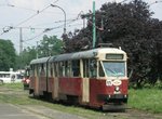 Last, and certainly not least, is a pair of ancient bi-directional Konstal N-type cars, retained for route 38 in Bytom. Short route 38, operated by one car between Piekarska Street in Bytom and Stacja Ruchu, cannot be modified with turning loops and thus requires bi-directional cars. It is not apparent as to why the Konstal 111Na cars aren't used and the 56-year old N types retired, however - although low ridership is a possibility. These elderly twin-axle cars have hand-operated doors and are the last of their type in operation in Poland.