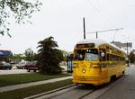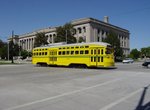 The City of Kenosha constructed an electric streetcar system utilizing historic PCC streetcars in coordination with the Harborpark Development on the shores of Lake Michigan. The Kenosha streetcar system will connect the 64 acre Harborpark development into the existing central city area and the METRA commuter rail station. Installation of the track subbase was completed in the fall of 1998, and the streets in Harborpark were completed in the fall of 1999 including the streetcar track. Electric overhead construction was completed in April of 2000. The first of five ex-Toronto PCC streetcars was delivered on Thursday, May 4, 2000. Each car is painted in a unique livery that represents a transit system that operated PCC streetcars. The dedication of the Streetcar line and the new Transit Center was held on June 17, 2000, with scheduled service starting on June 19, 2000
