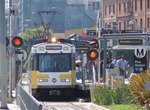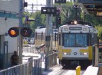 The Expo Line is Los Angeles's newest (as of 2012) light-rail line. It will run between Downtown Los Angeles at 7th/Metro Center and Santa Monica. It joins the Blue Line light rail near Pico station and uses the same tracks to access the subway station at 7th/Metro Center. The phase 1 segment opened on April 28, 2012. There are two more phase 1 stations, at Farmdale and Culver City, yet to open (projected: late June 2012). The present terminal is La Cienega Station. Phase 2 (from Culver City to Santa Monica) is under construction with a target date of completion in 2016. The Expo Line uses Los Angeles' existing fleet of LRV equipment and both the Nippon Sharyo P865/P2020 and Siemens P2000 LRVs may be seen on the line. At present the Expo Line fleet is based at the Blue Line's yard in Long Beach, but a new yard is planned to be built in Santa Monica as part of phase 2.