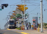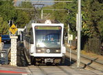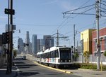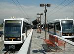 The LRVs used on the Gold Line are 26 of the 52 locally-assembled Siemens P2000, which were built between 1996 and 1999, but did not actually enter service until this year. The cars are numbered 227-250, plus 301 and 302 (these had been considered for some kind of automated operation, but equipment for such was never installed and which will not happen on the Pasadena Gold Line). They are identical to the units in service on the Norwalk-Redondo Beach Green Line. Service is every 10 minutes during peak times, 12 minutes during the day, and 20 minutes at night. Weekend daytime trains operate every 12 minutes apart. Fares are $1.35, with a surcharge for transferring to buses or the Red Line at Union Station.