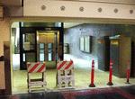 Our route begins at Union Station, where Gold Line trains serve the complex on Tracks 1 and 2, which had been pulled up during the reconstruction of the landmark station in the 1980s. Here connections are made to the Metrolink Commuter Rail services to Ventura County, Antelope Valley, Orange County, San Bernardino and Riverside; Amtrak Pacific Surfliner, Coast Starlight, Southwest Chief and Sunset trains to all points north, east, south and southwest; bus connections to Bakersfield; and LAMTA Red Line subway, serving downtown L.A., Wilshire Blvd., the north Vermont Avenue corridor, Hollywood, Universal City and North Hollywood. An island platform is located here. Both tracks extend south to the walkway and gap trains are sometimes stored here. Escalators and elevators descend to the subterranean walkway connecting with the station, other trains and the new Metro Center office tower for the Los Angeles County Transportation Authority (LACMTA). Although the platform can handle three-car trains, currently trains consist of two cars maximum.