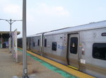 Seaford station is next. Located between Jackson and Washington Avenues, just north of Sunrise Highway, this elevated station features an austere design, with cuplights on tall poles illuminating the platform. The platform canopy is simple, with steel I-beams supporting it. The parking lot is attractive, with many trees shading it and grass islands separating the areas.
