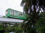 Finally, there is a tropical safari-themed cable-hauled tram running between Mirage and Treasure Island. The Mirage station is an outdoor, covered platform directly to the right of the main entrance to the hotel; at Treasure Island the station is in the rear on the second level. This tram consists of one car shuttling back and forth on a single track.