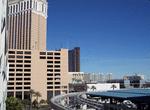 The next system northward connects the Monte Carlo Hotel with the now-famous Bellagio. This monorail runs between the rears of the hotels across some parking lots, but the stations are well-appointed, enclosed, fully accessible, and air conditioned. The two trains (one permanently mounted on each track) are rather bulbous monstrosities and are hauled with what appears to be a rubber belt running alongside the running rail. The cars appear to run in a "counter balanced" system departing their terminal stations at the same time and meeting in the middle, but hopefully can be operated independently such that one car can be out of service for maintenance without affecting operations.