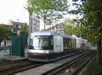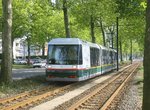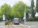 The city of Lille in northern France has two tramway lines, called "R" and "T". Built in 1909, they are the two remaining lines of a larger tram system in the city. These lines may be more properly called interurbans as they connect Lille to two neighboring towns, Roubaix and Tourcoing. The construction of Lille's metro threatened the tram lines but they were kept in service as they run mostly on reserved tracks alongside the boulevards between the towns. The tramway is sometimes called the "Mongy", after Alfred Mongy, the engineer who designed the lines over 100 years ago. The Lille terminal is underground at the Gare de Lille-Flandres, where transfer is available to the two lines of Lille's metro. The system was renovated in the early 1990s and is operated with low-floor tram cars. The Lille tramway is unusual among the French tramways as it is 1000mm narrow gauge.