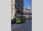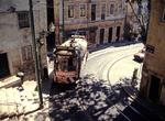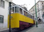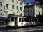 Lisbon tram on the Circuito das Colinas (Tourist Route) at Calçada de S. Francisco. Photo by David Pirmann, October 2001.