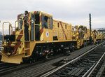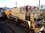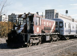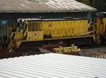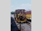 R-52 Locomotive 76 leads a work train at 25th Avenue on the BMT West End Line. Photo by Zach Summer, July 2007.