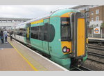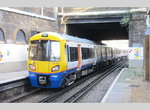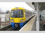 West Croydon. What can we say about this poor-relation station? It is a dump compared with main-line East Croydon, with its smart new entrance building above the tracks and convenient connections to the Tramlink station right outside the door. West Croydon has an entrance in Station Road pointing straight at the tram stop and bus station -- but this door is locked out of use, and everyone has to use the other one around the corner in London Road. Integrated public transport, TfL? Now that TfL, in the form of Overground, has taken over the station, surely reopening the Station Road entrance must be a high priority. The main entrance building in London Road is one of the old Southern Railway's unbeautiful concrete efforts from the inter-war years, now looking tired. Its signage is still (new) Southern-style, with nothing to suggest a change of proprietorship to Overground as yet. And no balloons either. I had expected that the ELL would take over the terminal platform 1 from Southern. But no; arriving ELL trains empty at platform 4, the main down through platform, go forward to relay, and return into the main up through platform 3, to load for the return journey, sharing platforms 3 & 4 with through Southern trains to and from Sutton and beyond. Only the now relatively rare terminating Southern trains use platform 1. There is no platform 2 -- there used to be one, a short terminal platform, for terminating Wimbledon trains, but as the Wimbledon service has been provided by the trams since 2000, platform 3 has been lengthened over the site of platform 2.