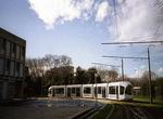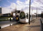 Citadis Low-Floor Type 302 no. 0810 on Line T1 at IUT-Feyssine. Photo by Bernard Chatreau, January 2001.