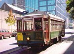During the next six years, plans were drawn up, and the rails were once again made worthy to carry streetcars. Four trolleys were purchased and/or restored for initial operation: two ex-Dallas cars, a Melbourne tram, and an Oporto, Portugal 4-wheel trolley built by Brill. And on June 22, 1989, the first trolley in 33 years ran on its own power in Big D. A month later, the line opened with great fanfare, a 4-streecar welcoming parade, high hopes and many standing-room-only runs.