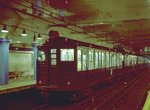We will start our tour in Bowdoin station just west of the center of downtown Boston. Bowdoin opened on March 16, 1916. It features a center platform in the east half of an underground balloon loop track. Inbound trains stop, then head west, though a sharp turn loop just west of the station platform. They emerge at the outbound side of the platform, ready to head to Revere. Just west of the Bowdoin loop are two stub end tracks for storage. When the line was still operated by trolleys, these tail tracks extended beyond Bowdoin to a portal at Cambridge and Russell Streets, and thence across the Longfellow Bridge. The portal was sealed on October 23, 1952 but probably had not seen service since the 1920s conversion of the line to rapid transit operation. From time to time, talk arises about extending the Blue Line westward through these tunnels to western parts of Boston or Cambridge. If this were to happen, Bowdoin station would probably be demolished and rebuilt since it is not able to be enlarged at its present location to accommodate 6 car trains. Bowdoin station is currently used only during rush hours; it is very close to the Government Center stop, and passengers can walk to areas around Bowdoin from that station.