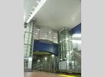 Now heading northeast, the line departs the subway and enters Airport station. This station has two side platforms, and the area is surrounded by highway overpasses. Though not right at the airport, the MBTA provides a free shuttle bus to each terminal from here. In 2004 a new station opened, slightly east of the original, which (as you can tell from the photos) is quite different from any other MBTA rapid transit station. This station is where trains transfer from third rail to overhead wire. You can stand on the platforms, and watch the pantographs rise up and contact the catenary. During the switch, ventilation and lighting systems on the train are temporarily disrupted.
