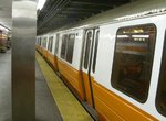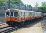 MBTA Orange Line 01200 series train at Massachusetts Avenue. Photo by Richard Panse, October 2004.