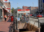 Downtown Crossing (Renamed June 26, 1985, formerly Washington; opened April 4, 1915.) Downtown Crossing has two tracks and two outside platforms which extend from west of Hawley St. to east of Chauncy St.. There is a low wall with columns between the tracks. At the west end, the platforms continue as passageways to the west side of Washington St. leading to stairways up to the Winter platform. The north stairway is divided into two equal flights. The upper flight of the southern stairway matches that of the northern one, but the lower flight is divided into three sections each on a slightly different heading. The Winter Street Concourse which is within fare control, connects the Winter platform to the head of the stairs leading to the center platform at Park St. Under. Prior to being opened to the public in the 1980s, the passageway was used as storage space and for offices, some of which still remain along the south wall. The Summer St. Concourse extends from the Summer platform to just east of Chauncy St. Originally this was entirely a paid area, with a south side fare control at the west end and a north side fare control at the east end. Four stairwells, two for each platform, connect the concourse with the Washington platforms. Each consists of two flights, connected by a semicircular landing. The westerly pair connect at the landings to direct entrances to the sub-basements of Filenes and Jordan Marsh (now Macy's). The west end fare control was part of the Summer station and extended about 40 feet along the concourse. There was a two flight stairway to the corner of Summer and Washington Sts to the west, and a single flight up to a landing to the east. The landing also served an exit stair from Summer, a flight up to the surface, and a flight down to Filenes main basement. Down at platform level, an escalator leads directly from a high exit on the north platform to Hawley St.. Across the way further east, a similar exit leads to an escalator direct to Chauncy St.