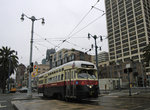 San Francisco MUNI 1951 "wings", green & cream. Rehabilitated from SEPTA PCC. Former SEPTA #2119.