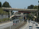 After SF State, 19th Avenue makes a bit of a turn and highway 1 continues on a different street. At this point, the tracks change to street running. The M line then passes through the area known as Ocean View, a funny name for a place with a better view of the freeway than any body of water. The M line serves Ocean View on Randolph Street and Broad Street before reaching San Jose Avenue. The tracks follow San Jose back to Balboa Park, coming in from the opposite direction as the J line. While J & K trains make their Balboa Park stop next to the BART station at the Curtis E. Green Light Rail Center, M trains stop across the street in front of Geneva Yard. M trains turn around by pulling through the yard.