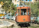 The ride doesn't finish here, however; a tramway line using heritage and some home-built cars operates from Sóller to the coastal town of Puerto de Sóller. The tramway, used by tourists and locals alike, runs 4 km. through the heart of the town of Sóller along streets and through its main square, and then via private right of way emerging at the edge of Puerto de Sóller's cove beach. The tramway was Majorca's first electric railway, operating since 1913. The tramway makes 17 stops along its route but only a handful are used-- those in-between the town centers of Sóller and Puerto de Sóller have limited boardings, mostly by locals (and railfans), and many are "flag" stops. The tramway is single track except at the Sóller terminal, at Ca'n Guida station, at Es Control station, and just past Marysol station outbound. (The penultimate station on the line, Marysol, is the current terminal of the line due to repair works between there and the usual terminal at Sa Pagesa.)