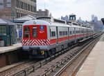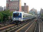 The tunnel portal is at 97th Street and we rise to a full viaduct by 99th Street, the structure being full concrete tie and ballast construction. An abandoned station is found at 110th Street, which had four tracks and two side platforms.