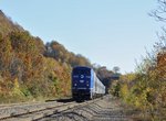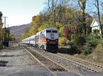 Metro North-Hudson Line train viewed from the Bear Mountain Bridge. Photo by Richard Panse, October 2010.
