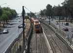 The line was built and operated by the Spanish railroad equipment builder CAF. The trains are "Model 447" EMUs built in Spain, and each train is made up of two units of four cars each. Each car can hold 225 people (seated and standing), with a total capacity per train of 1800 people.