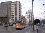 Line 29/30 (Circular). Because of the construction at Staz. Garibaldi, this line operates only between Deposito Messina and Pza. IV. Novembre (Staz. Centrale), with buses bridging the gap. Peter Witts and 6-axle trams (these return to this route for the first time since the 2002 changes).