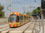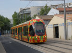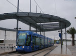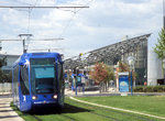 Montpellier Citadis tram at Rives du Lez on Line 1. Photo by Thierry Leleu, April 2007.