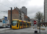 There are two lines. Line 1 runs basically north-south, with the south end terminating at the SNCF Gare Centrale (main railway station). It passes through Place République and runs past the 1384-vintage Clock Tower before joining with Line 2 from the east and a 4-track station at Porte Jeune. Line 1 uses the inner tracks; Line 2, which runs basically northeast-southwest, takes the outer rails, although it's possible for trams to use tracks other than usual.
