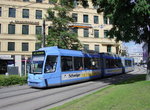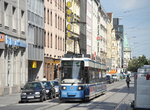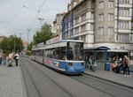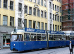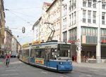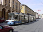 MVG tram no. 2150 at Maximillianstrasse-Schauspielhaus on rt. 19. Photo by David Pirmann, September 2002.