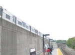 Trains leave the pines and development becomes plentiful again, and the track rises onto an embankment just before Absecon station comes into view. The station is on this embankment and requires an elevator for access for those who cannot climb the stairs (other stations can be accessed by zig-zag ramps as well as short stairways). Absecon is the last station on the mainland, so to speak - it is a little-known fact that Atlantic City, as most of its Jersey coast resort towns, is on a barrier island. The track continues on its embankment through the marshland, with the towers of Atlantic City coming into view. The single track becomes two about two miles from Absecon and remains that way into the last stop. The busy Atlantic City Expressway, with its median parking areas for casino employees, is just to the south of the trains.