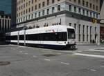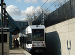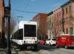 NJT-HBLR LRV no. 2044 at the Marin Blvd. overpass in Jersey City. Photo by David Pirmann, April 2012.
