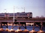 We slowly cross the Raritan River on a low bridge with no siderails, giving the impression that you are on a boat, with an unobstructed scenic view of Staten Island to the northeast. Shortly after crossing the river we arrive at South Amboy station, with a view of the bay to the north. South Amboy has a low platform on the New York bound side, and no platform on the Bay Head bound side - instead there are just some signs indicating a station and a crossover to the station house and the northbound platform. New York bound trains use a center track, and passengers must cross the outer track closest to the platform to board the train. Some trains known as "Corridor/Coast Line Trains" terminate here.
