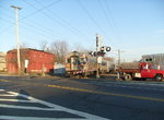 We cross the Navesink River on a long bridge and immediately arrive at the Red Bank station, which is located in the heart of Red Bank between Oakland and Chestnut Sts. at grade. Red Bank has two low platforms and a very nice station house. There are also mini-high platforms at the east end for disabled-access to trains. There is a canopy on the New York bound platform and bus shelters on the Bay Head bound platform. A short maintenance of way yard is west of the station on both sides.