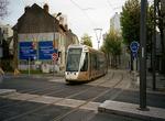 Orléans Citadis Type 301 tram no. 40 crossing the river Loire on Pont George V inbound. Cathedral Sainte-Croix is in the background on the right. Photo by Peter Ehrlich, October 2002.