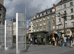 It's time to cross the river Loire on George V Bridge to reach the old center of Orléans (mainly 18th century buildings). First stop is Royale-Châtelet on rue Royale. Notice that the cars lanes are on the tram stop platforms! In fact, there is here only local traffic. Across the old center, the line reaches the De Gaulle stop. Then, crossing the main square that is the very center of Orléans, the place du Martroi (with a statue of Joan of Arc, the Maid of Orléans), the line enters the very busy rue de la République, which is reserved today for use by pedestrians-- and the tram. This street is a typical 19th century street which joins the old center and the railway station, with a stop at République.