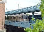 Turning east we enter Franklin Square, currently closed, last having been used during and just after the 1976 American bicentennial celebrations. It was closed for lack of ridership. Departing Franklin Square, We now cross the Benjamin Franklin Bridge into New Jersey. There is a single track on each of the north and south sides of the bridge (carrying westbound and eastbound trains, respectively).